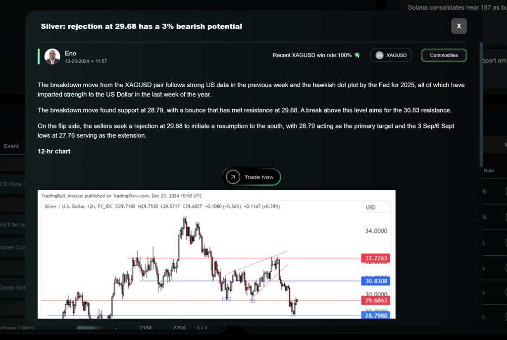 - Articles featuring trade ideas include win rates, giving clients confidence in the insights provided.